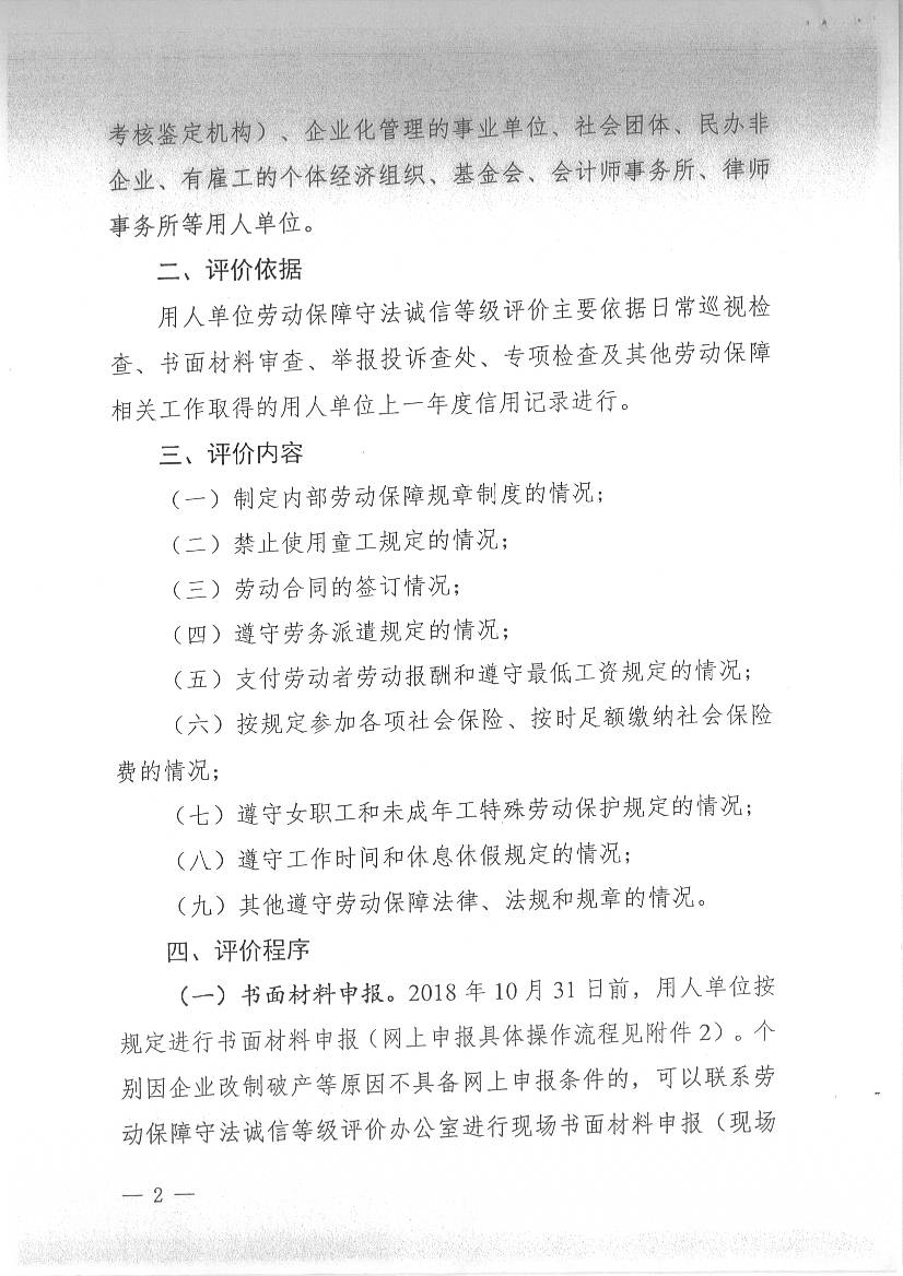2018年度用人單位勞動保障守法誠信評價工作