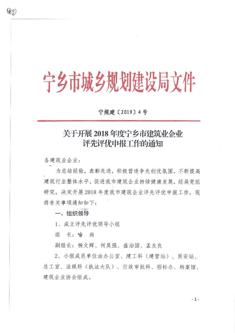 關于表彰2019年度寧鄉市建筑業先進企業的決定