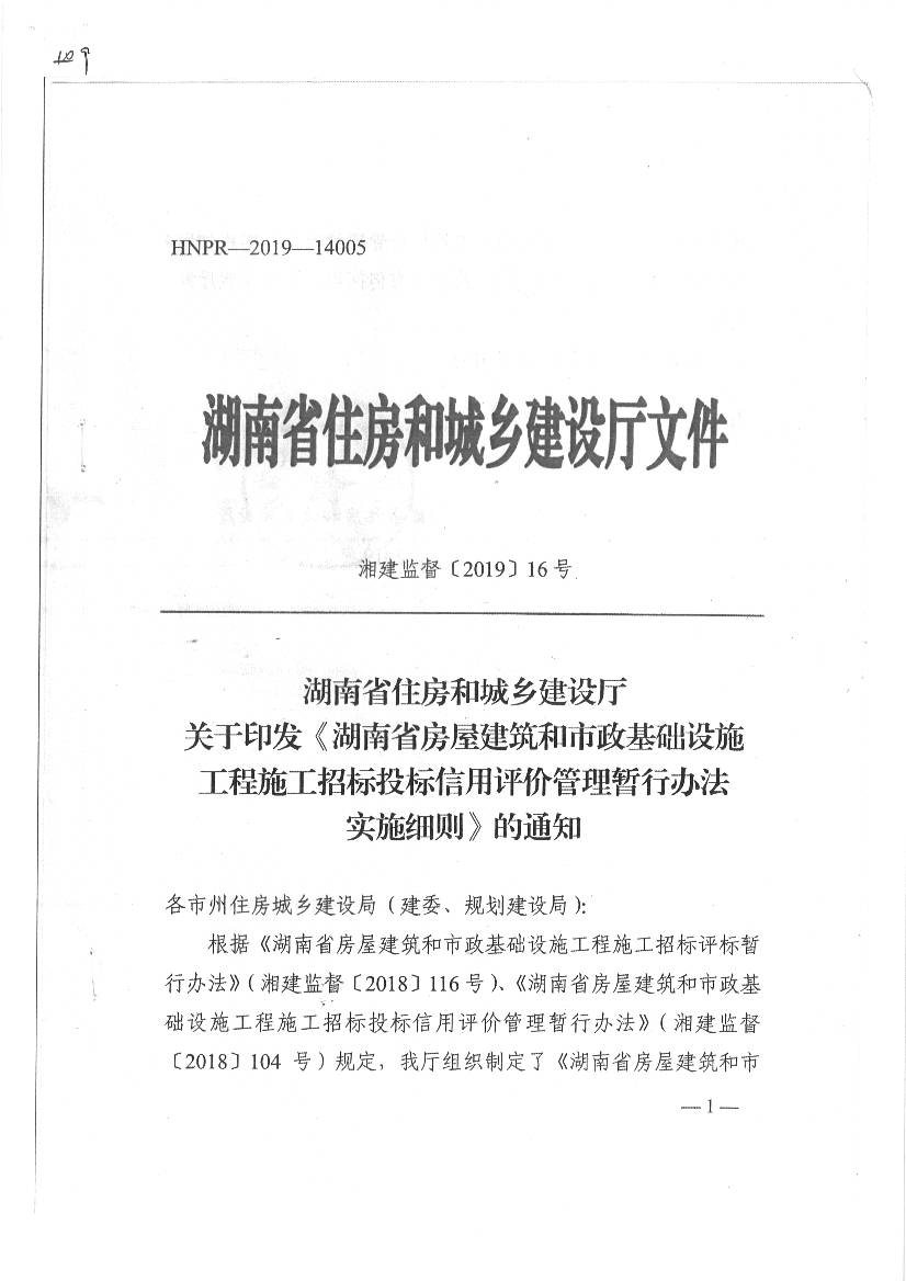 湖南省房屋建筑和市政基礎設施工程施工招投標投標信用評價管理暫行辦法實施細則