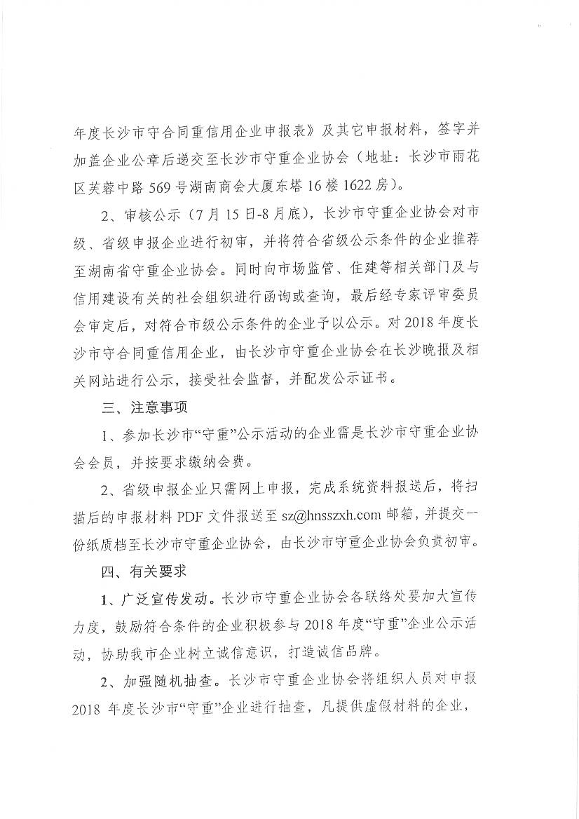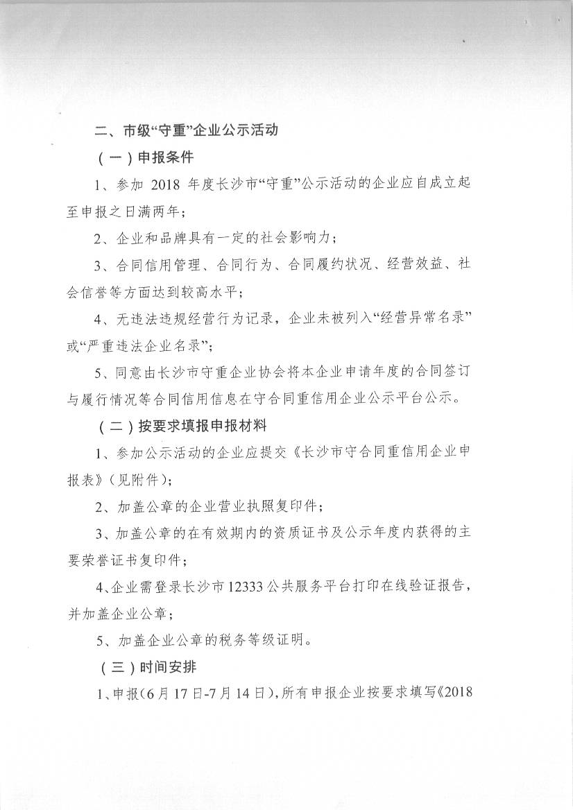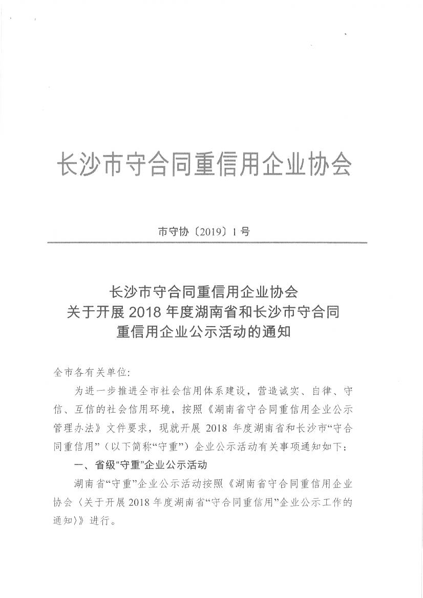 長沙市守合同重信用企業(yè)協(xié)會(huì)關(guān)于開展2018年度湖南省和長沙市守合同重信用企業(yè)公示活動(dòng)的通知