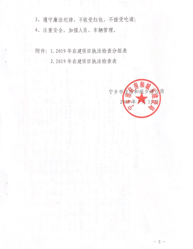 《關于對全市在建項目進行執法檢查的通知》(寧住建[2019]12號